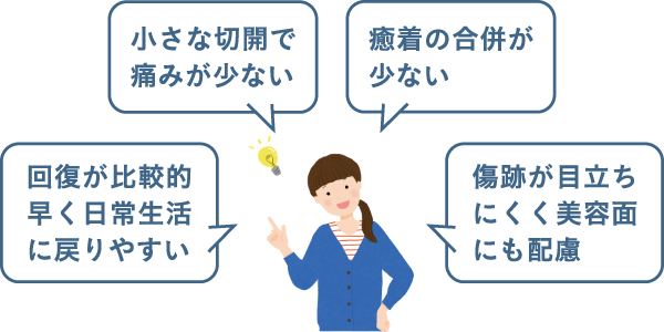 一方で、すべての患者さんに適応できるわけではありません。病変の大きさや場所、癒着の有無、既往歴などによっては適さない場合があり、通常の腹腔鏡手術や開腹手術の方が安全なこともあります。実際の適応は、診察や画像検査の結果をもとに慎重に判断します。